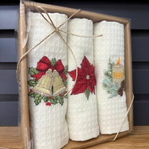 Σετ ποτηρόπανo κουζίνας Σχ.Ch031 πικέ 3 τμχ. με κέντημα σε κουτί 40x60cm