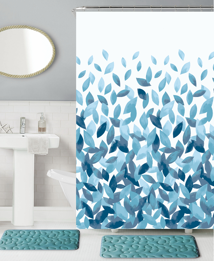 Κουρτίνα μπάνιου printed με κρίκους Σχ.Leafs blue 180x200cm 100% pol.