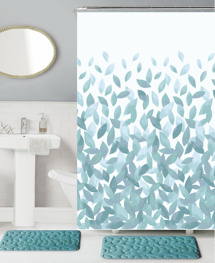 Κουρτίνα μπάνιου printed με κρίκους Σχ.Leafs mint 180x200cm 100% pol.