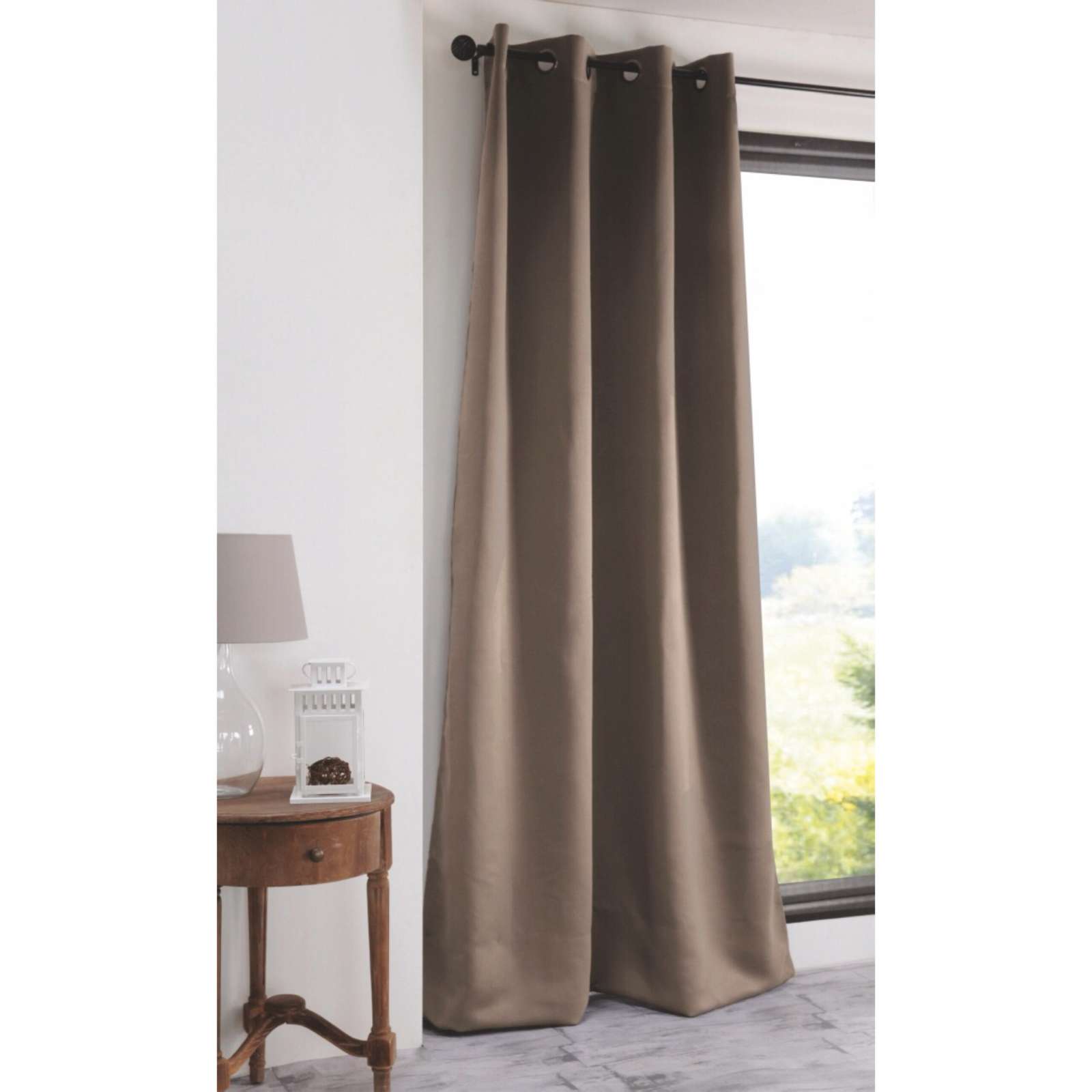 Κουρτίνα ζακάρ Σχ. Teora taupe 140x260cm έτοιμη ραμμένη με κρίκους 100% pol.
